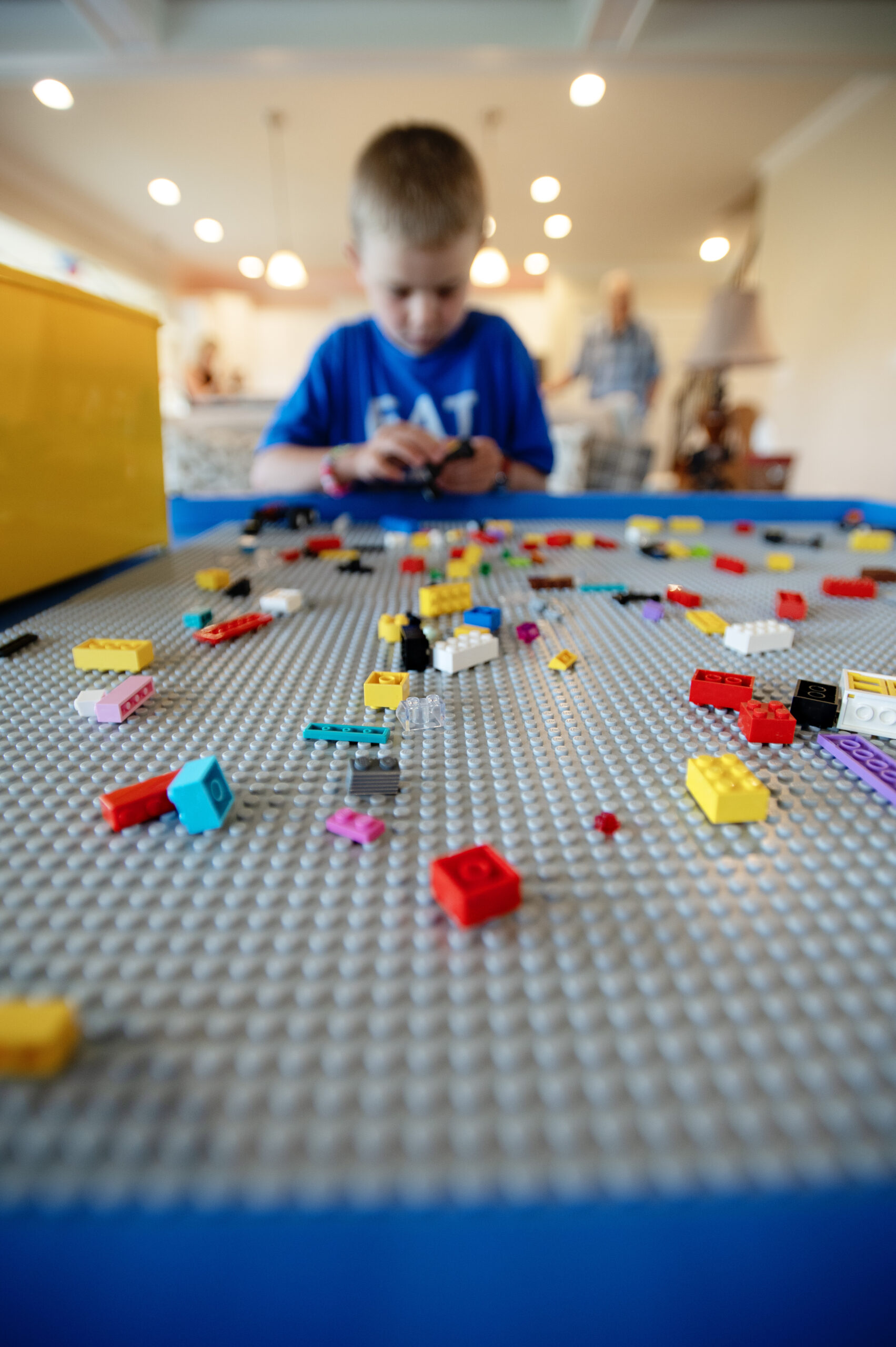 Our Custom Creative Play Table invites your guests to dive into nearly 5,000 LEGO® pieces in an open-ended, free play zone—no instructions, no rules, just imagination!