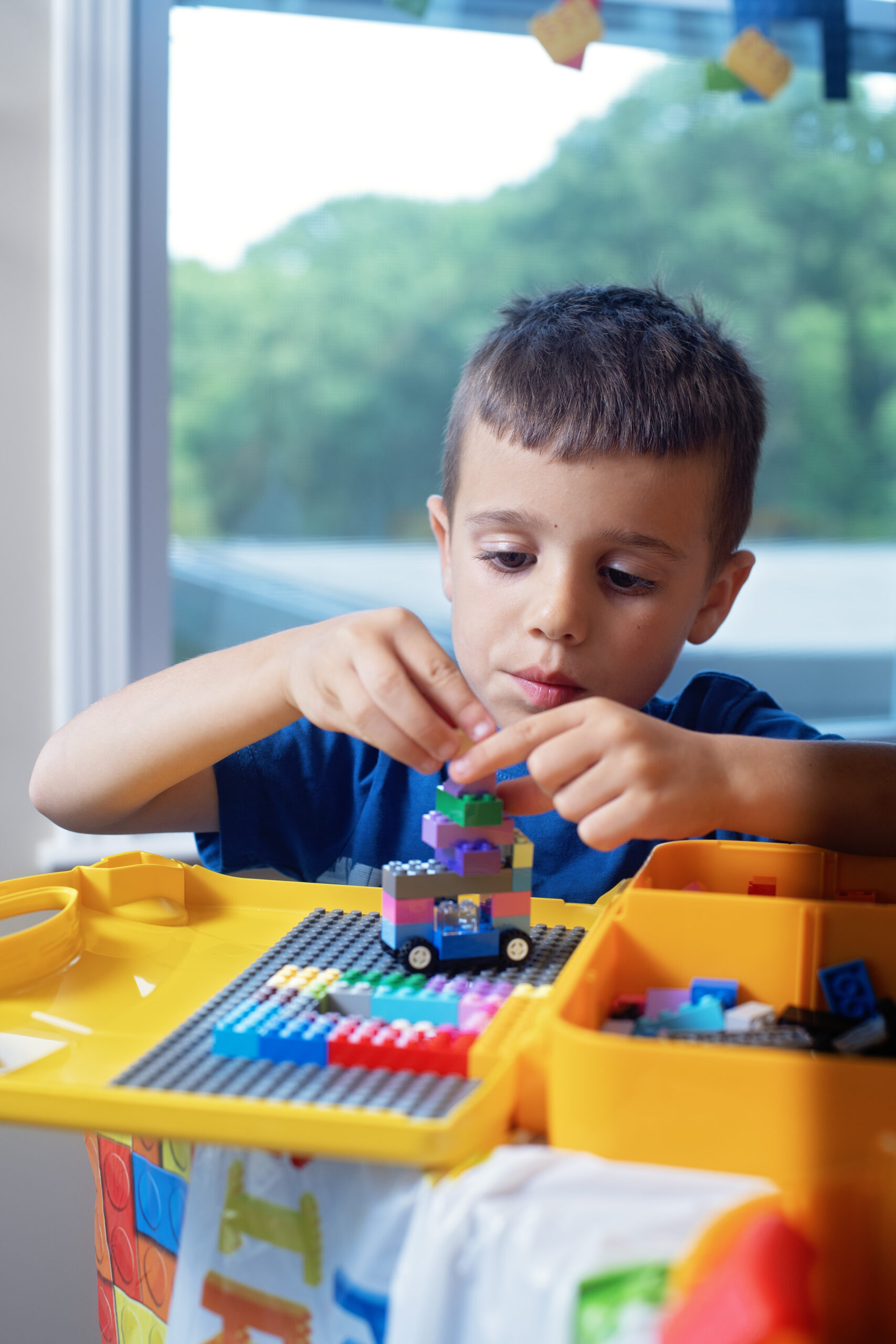 Our Custom Creative Play Table invites your guests to dive into nearly 5,000 LEGO® pieces in an open-ended, free play zone—no instructions, no rules, just imagination!